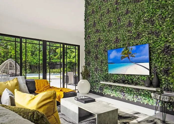 Zur Zimmerausstattung gehören ein Patio, Ausstattung zur Kaffee- & Teezubereitung und WLAN sowie eine voll ausgestattete Küche mit einer Mikrowelle, einer Spülmaschine und einer Kaffee-/Teemaschine. Es gibt 1 Schlafzimmer in der Villa The Writers Retreat Lush Garden With Pool. Hier werden 3 Badezimmer angeboten.